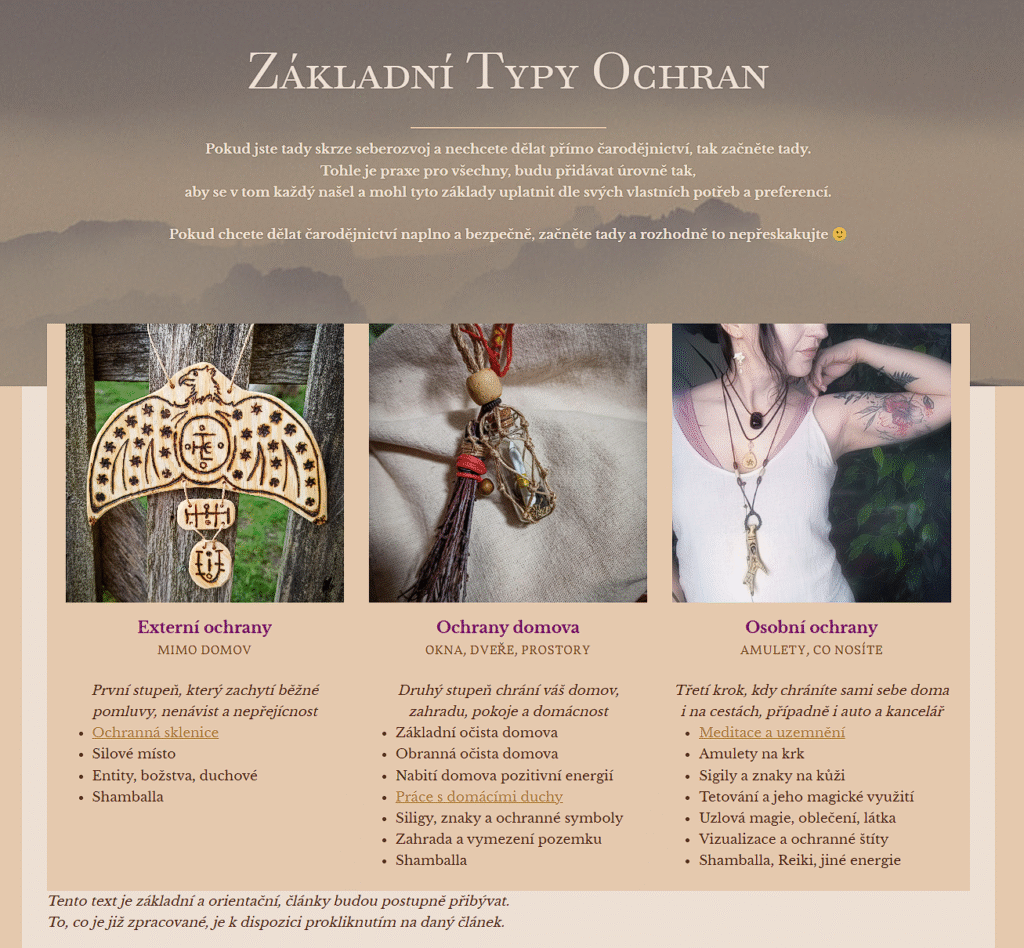 Aktuálně tam najdeš přes 80 příspěvků na témata čarodějnictví, ochran, práce s bytostmi ale i „obyčejného“ seberozvoje a témat,
